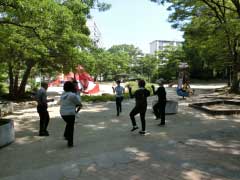 千里南公園で「ウォーキング講習会 公園で歩こう」を実施しました。歩くための筋力をつけるトレーニングやバランストレーニング、歩き方の講習をして、公園を歩きました。千里南公園には、健康器具や健康歩道があり、「歩く」こと以外にもチャレンジしていただきました。暑い中、ご参加くださった皆さま、有難うございました。 6月20日金曜日は、片山公園で9時30分~11時です。平和のバラ園前にお集まりください。申込みは不要です。 |