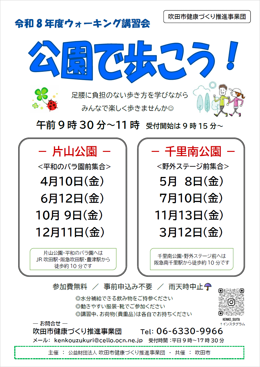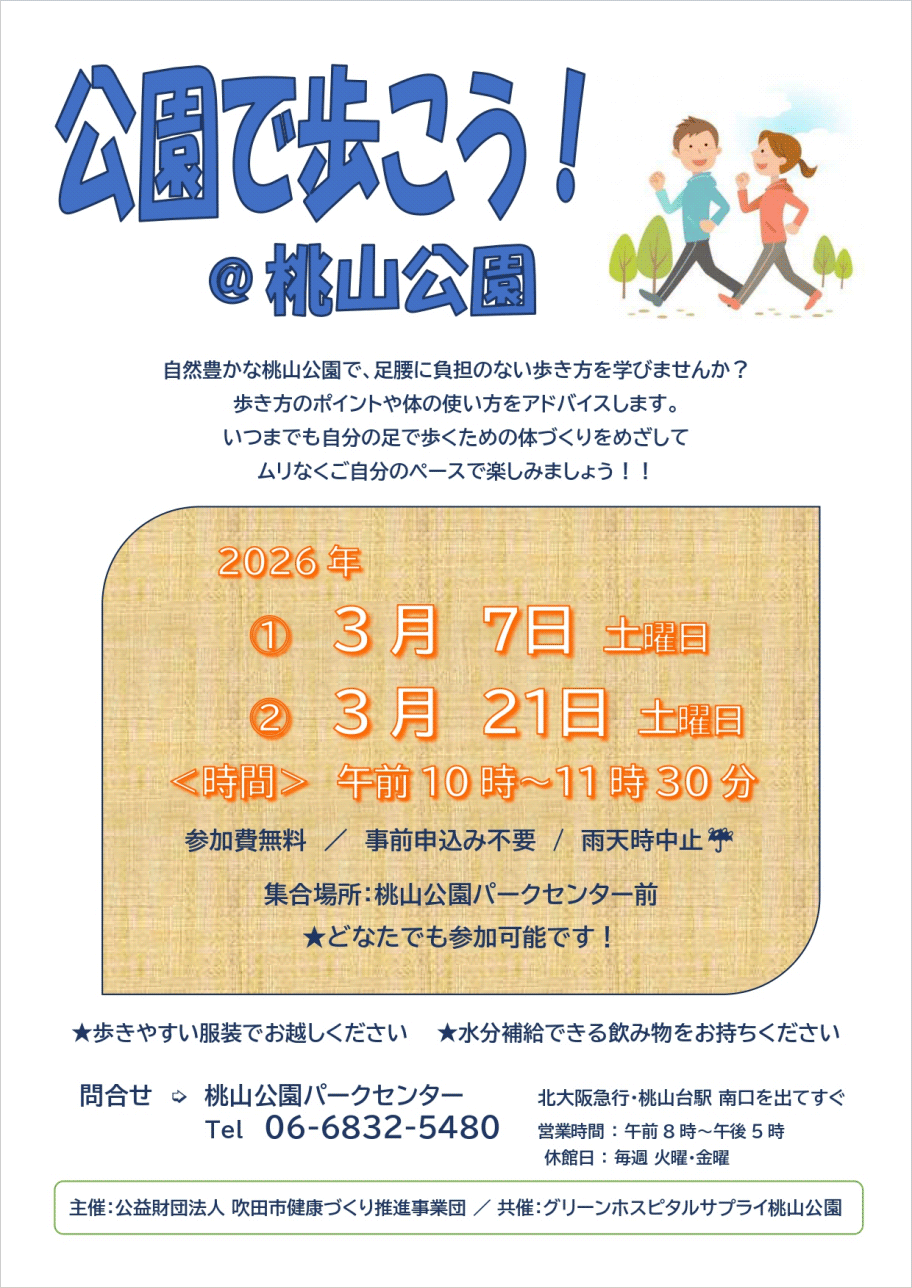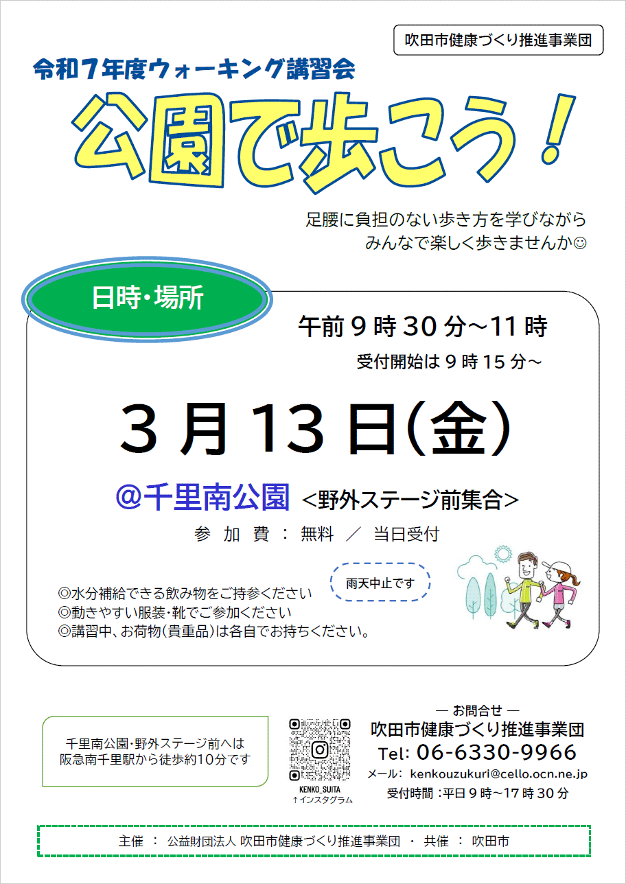 ウォーキング講習会 公園で歩こう!(令和8年3月13日)千里南公園